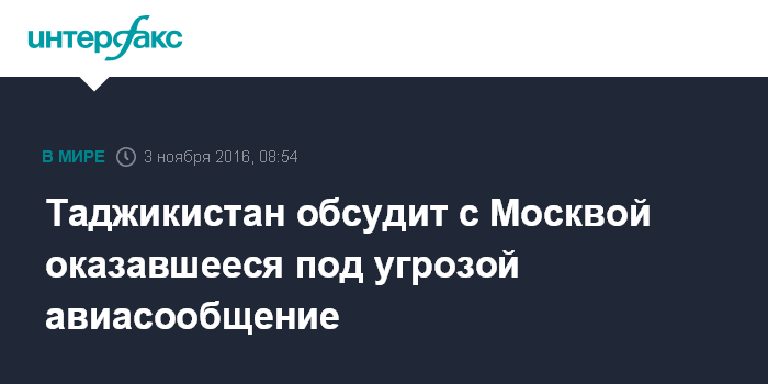 Ранее газета "Коммерсант" сообщила, что Россия на следующей неделе может в одностороннем порядке прекратить авиасообщение с Таджикистаном из-за отказа властей этой страны согласовать полеты российских авиакомпаний из нового аэропорта "Жуковский".