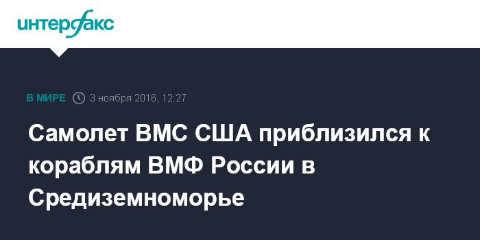 Самолет ВМС США приблизился к кораблям ВМФ России в Средиземноморье