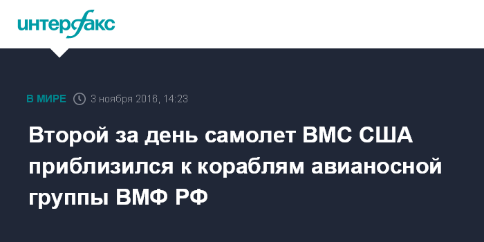 Второй за день самолет ВМС США приблизился к кораблям авианосной группы ВМФ РФ