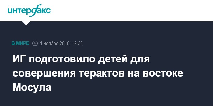 Москва. 4 ноября. INTERFAX.RU - Террористы из группировки "Исламское государство" (запрещена в России) подготовили детей для совершения терактов против иракских военных в восточных кварталах Мосула, сообщает агентство EFE.