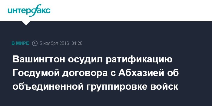 Вашингтон осудил ратификацию Госдумой договора с Абхазией об объединенной группировке войск