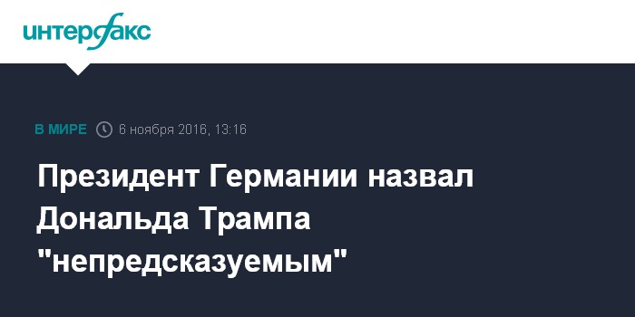 "Мы не можем сказать, чего ждать от Дональда Трампа, как президента. Это представляет собой проблему для меня, для многих людей в США и здесь, у нас дома", - сказал Гаук в интервью журналу Der Spiegel.