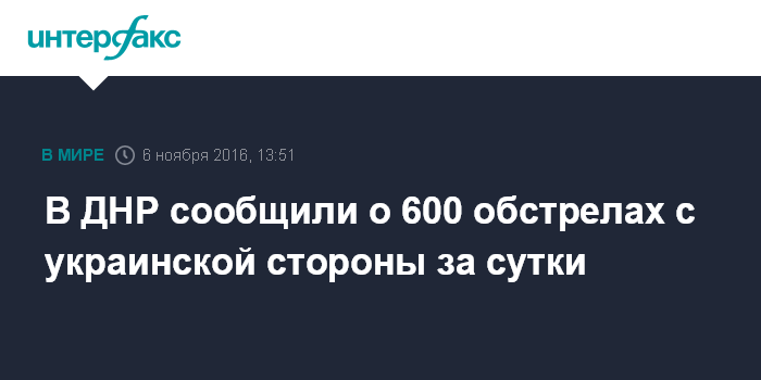 В ДНР сообщили о 600 обстрелах с украинской стороны за сутки