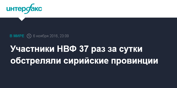 Москва. 6 ноября. INTERFAX.RU - Участники незаконных вооруженных формирований за сутки более 30 раз обстреляли населенные пункты и объекты в Сирии, сообщили в Минобороны РФ.