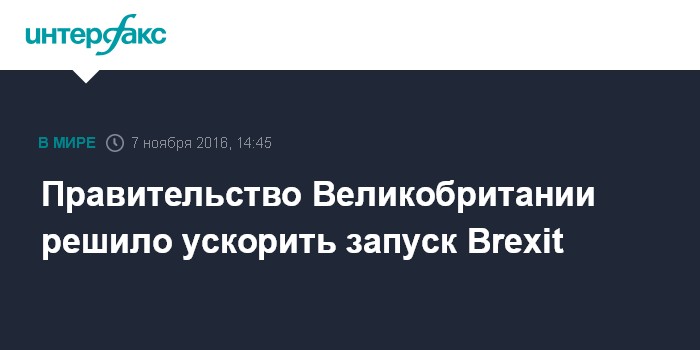 Москва. 7 ноября. INTERFAX.RU - Правительство Великобритании готовит законопроект, нацеленный на ускорение запуска официальной процедуры выхода страны из состава ЕС, сообщил британский телеканал Sky news в понедельник.