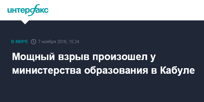 Москва. 7 ноября. INTERFAX.RU - Мощный взрыв произошел в центре Кабула в понедельник примерно в 16:30 по местному времени, сообщают местные СМИ.