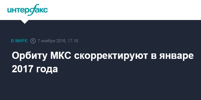 Москва. 7 ноября. INTERFAX.RU - Центр управления полетами в подмосковном Королеве очередной раз скорректирует орбиту Международной космической станции в конце января 2017 года, сообщил "Интерфаксу" источник в ракетно-космической отрасли.