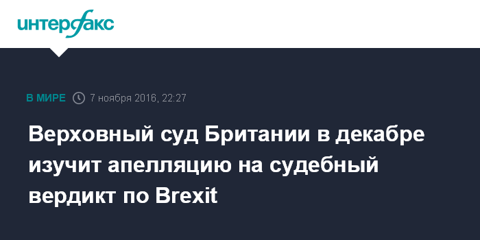 На прошлой неделе Высокий суд Лондона постановил, что прежде чем начинать процедуру Brexit правительству Британии нужно одобрение парламента. Британские власти выразили недовольство решением суда и заявили о намерении подать апелляцию в Верховный суд Великобритании.