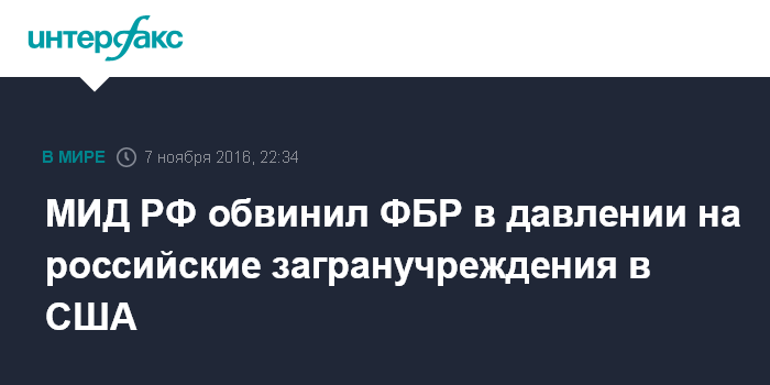 МИД РФ обвинил ФБР в давлении на российские загранучреждения в США