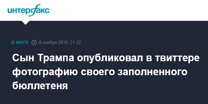 Судя по фотографии Трамп отдал голос за отца - Дональда Трампа, позже фотография была удалена из его твиттер-аккаунта, но успела разойтись по интернету.