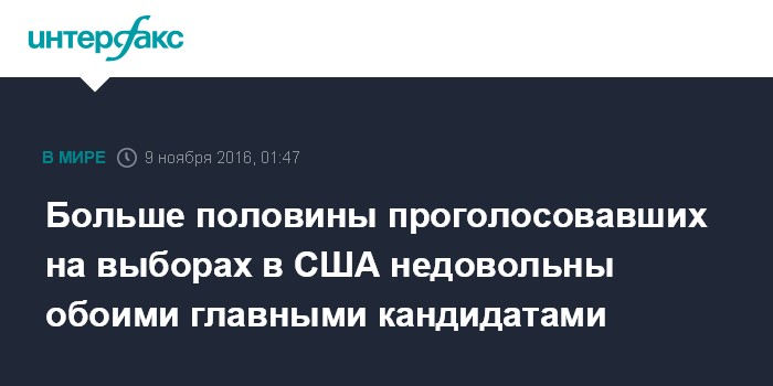 Больше половины проголосовавших на выборах в США недовольны обоими главными кандидатами