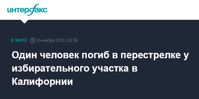 Москва. 9 ноября. INTERFAX.RU - Жертвой стрельбы у избирательного участка в городе Азуса штата Калифорния стал один человек, три человека ранены, сообщает CBS Los Angeles.