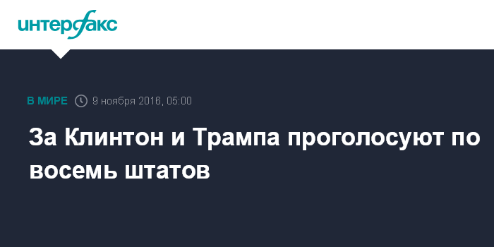 Москва. 9 ноября. INTERFAX.RU - Кандидат в президенты США от демократов Хиллари Клинтон одержит победу в восьми американских штатах, получив 68 голосов членов Коллегии выборщиков, прогнозирует американский телеканал CNN.