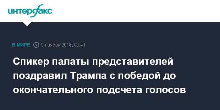 Спикер палаты представителей поздравил Трампа с победой до окончательного подсчета голосов