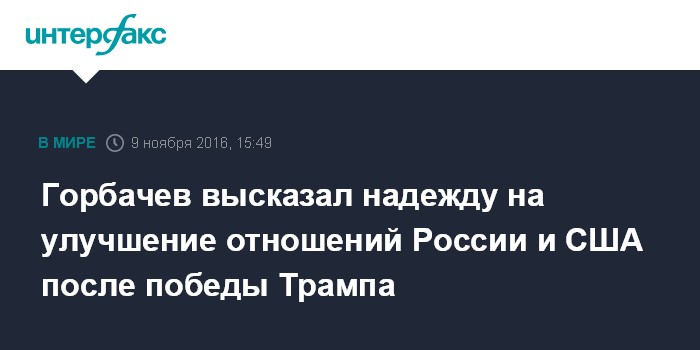 Горбачев высказал надежду на улучшение отношений России и США после победы Трампа