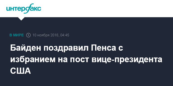 Байден поздравил Пенса с избранием на пост вице-президента США
