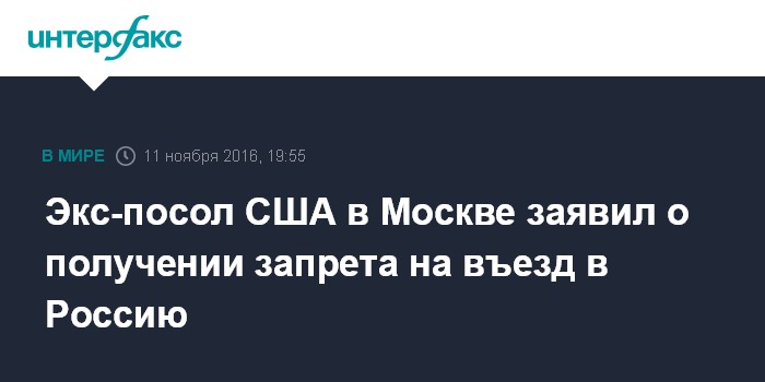 Экс-посол США в Москве заявил о получении запрета на въезд в Россию