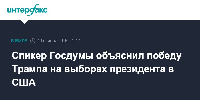 Спикер Госдумы объяснил победу Трампа на выборах президента в США