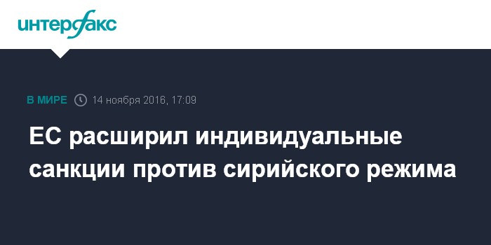 Москва. 14 ноября. INTERFAX.RU - Совет ЕС 14 ноября добавил к списку лиц, подпадающих под санкции Евросоюза против сирийского режима, 17 министров и управляющего Центральным банком страны.