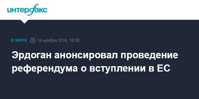 Москва. 14 ноября. INTERFAX.RU - Анкара может уже в следующем году провести референдум по вопросу о том, следует ли стремиться к вступлению в ЕС, заявил в понедельник президент Турции Реджеп Тайип Эрдоган.