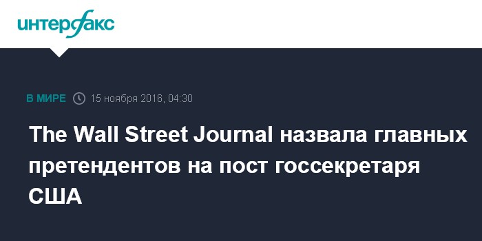 The Wall Street Journal назвала главных претендентов на пост госсекретаря США