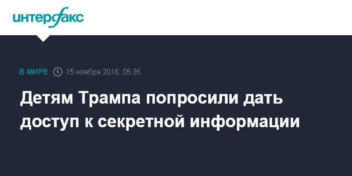 Москва. 15 ноября. INTERFAX.RU - Переходная команда избранного президента США Дональда Трампа обратилась в Белый дом с просьбой о предоставлении доступа к государственным секретам его взрослым детям, сообщил во вторник телеканал CBS.