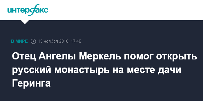 Москва. 15 ноября. INTERFAX.RU - Отец канцлера Германии Ангелы Меркель оказывал содействие в открытии русского Георгиевского монастыря в немецкой деревне Гетшендорф.