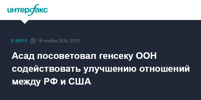 Асад посоветовал генсеку ООН содействовать улучшению отношений между РФ и США