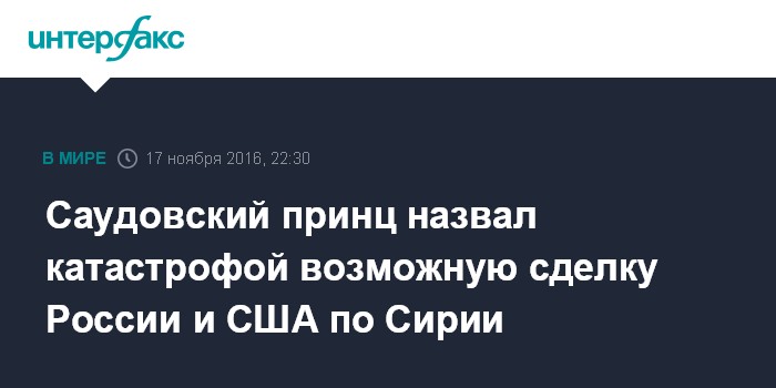 "Если избранный президент Дональд Трамп решит заключить сделку с Россией и Ираном по Сирии, это станет самым катастрофичным шагом", - заявил принц.