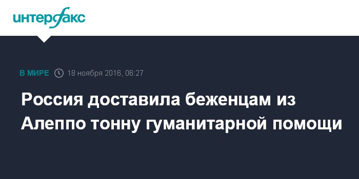 Россия доставила беженцам из Алеппо тонну гуманитарной помощи