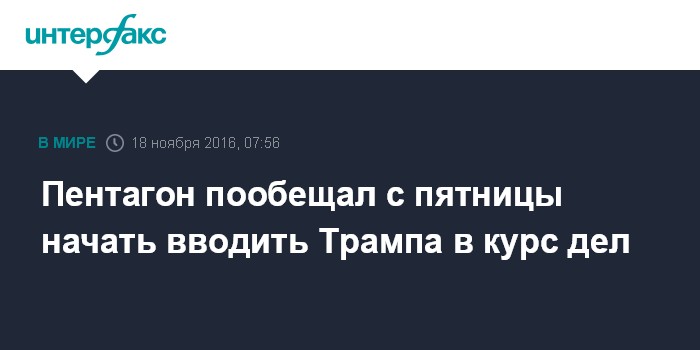 Пентагон пообещал с пятницы начать вводить Трампа в курс дел