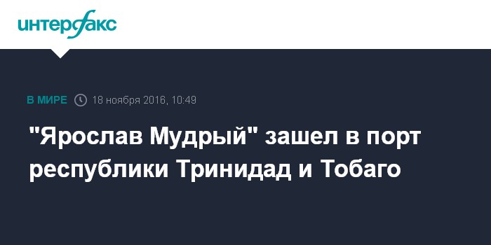 "Отряд кораблей Балтийского флота в составе сторожевого корабля (СКР) "Ярослав Мудрый" и танкера "Лена" в рамках выполнения задач дальнего похода в Атлантическом океане 17 ноября зашел в порт Пойнт-Фортин Республики Тринидад и Тобаго", - сказал Мартов.