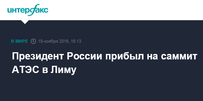 Москва. 19 ноября. INTERFAX.RU - Президент России Владимир Путин прибыл в Перу для участия в саммите Азиатско-Тихоокеанского экономического сотрудничества (АТЭС).