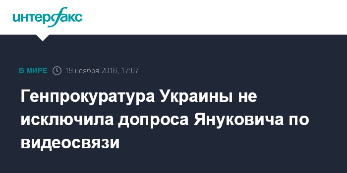Москва. 19 ноября. INTERFAX.RU - Допрос в режиме видеоконференции бывшего президента Украины Виктора Януковича в качестве свидетеля по делу об убийствах активистов Майдана может состояться 25 ноября, заявил начальник департамента специальных расследований Генеральной прокуратуры Украины Сергей Горбатюк.