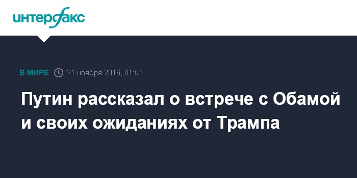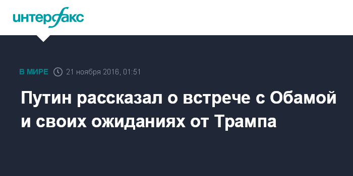 Путин рассказал о встрече с Обамой и своих ожиданиях от Трампа