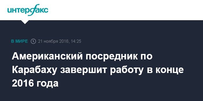Американский посредник по Карабаху завершит работу в конце 2016 года