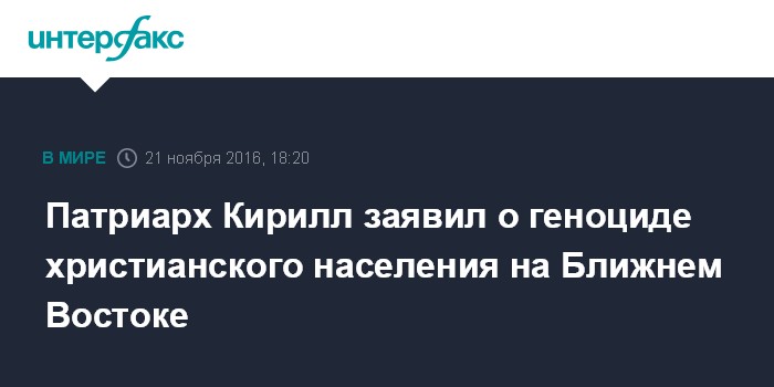 Москва. 21 ноября. INTERFAX.RU - Патриарх Московский и всея Руси Кирилл заявил, что гонения на христиан на Ближнем Востоке стали самыми масштабными в мировой истории.