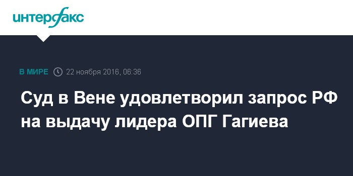 "Земельный суд Вены (...) удовлетворил очередной запрос Генпрокуратуры России о выдаче Аслана Гагиева (он же Сергей Морозов), заочно обвиняемого главным следственным управлением СКР по Северо-Кавказскому федеральному округу (СКФО) в организации преступного сообщества, а также целой серии заказных убийств (ст. 210 и 105 УК РФ)", - пишет издание, ссылаясь на пресс-секретаря суда Кристину Зальцборн. Как сообщила Зальцборн, Джако, которому был возвращен залог, в очередной раз предстал перед судом уже "абсолютно свободным человеком".