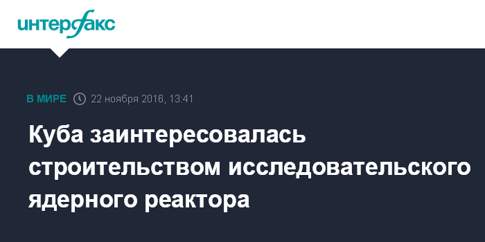 Москва. 22 ноября. INTERFAX.RU - Куба интересуется строительством исследовательского ядерного реактора на своей территории, сообщил журналистам замглавы ГК "Росатом" Николай Спасский.