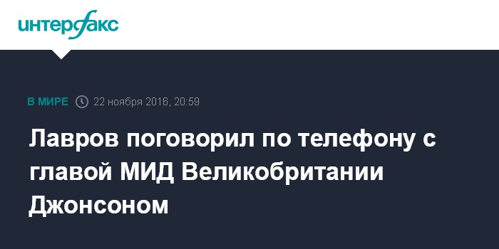 Москва. 22 ноября. INTERFAX.RU - Во вторник по инициативе британской стороны состоялся телефонный разговор министра иностранных дел России Сергея Лаврова с министром иностранных дел Великобритании Борисом Джонсоном.