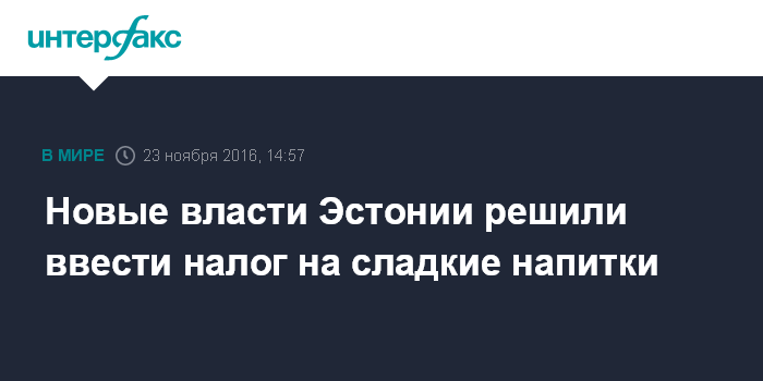 Москва. 23 ноября. INTERFAX.RU - Новое правительство Эстонии заявило о введении в стране налога на напитки с содержанием сахара и его заменителей.