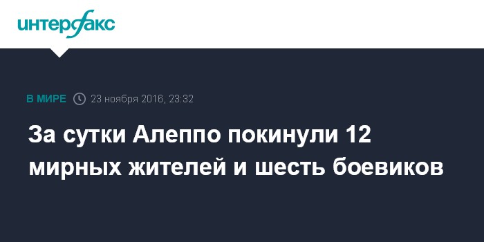 За сутки Алеппо покинули 12 мирных жителей и шесть боевиков