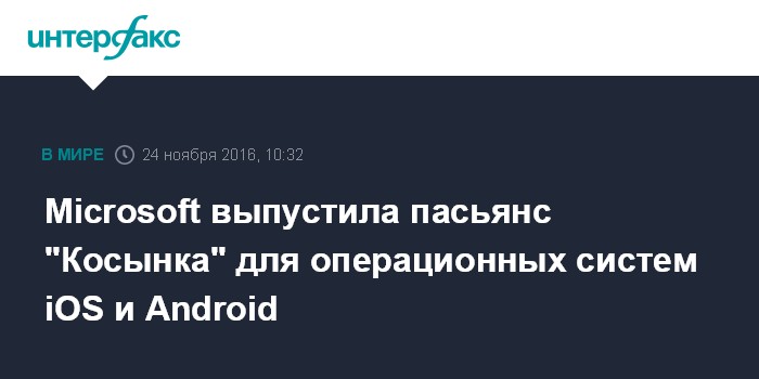 Москва. 24 ноября. INTERFAX.RU - Крупнейший мировой разработчик программного обеспечения Microsoft Inc выпустила приложение с пасьянсом "Косынка" для операционных систем iOS и Android.