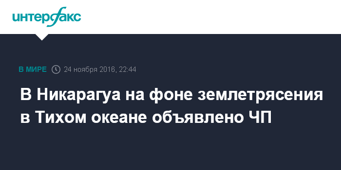 Москва. 24 ноября. INTERFAX.RU - Власти Никарагуа объявили о введении чрезвычайного положения в стране на фоне землетрясения магнитудой 7,2, которое было зафиксировано в четверг в Тихом океане у берегов Центральной Америки, сообщают в четверг западные СМИ.