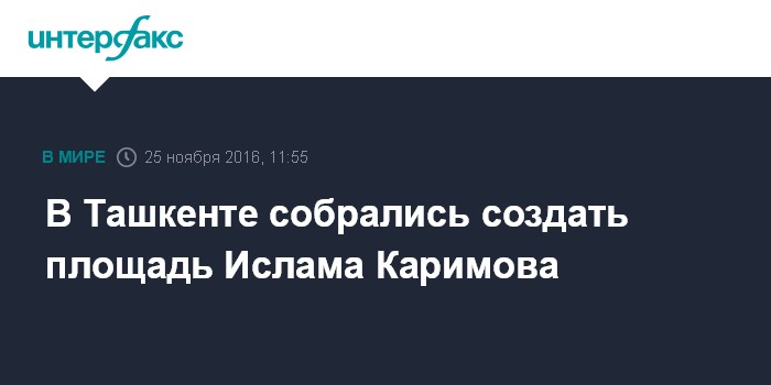 Москва. 25 ноября. INTERFAX.RU - Для увековечивания памяти первого лидера Узбекистана Ислама Каримова в Ташкенте собрались создать площадь его имени.