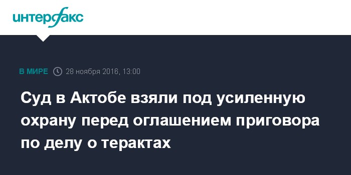 Москва. 28 ноября. INTERFAX.RU - Усиленные меры безопасности предприняты в понедельник в Актобе (адмцентр Актюбинской области) перед оглашением приговора по делу об июньских терактах.