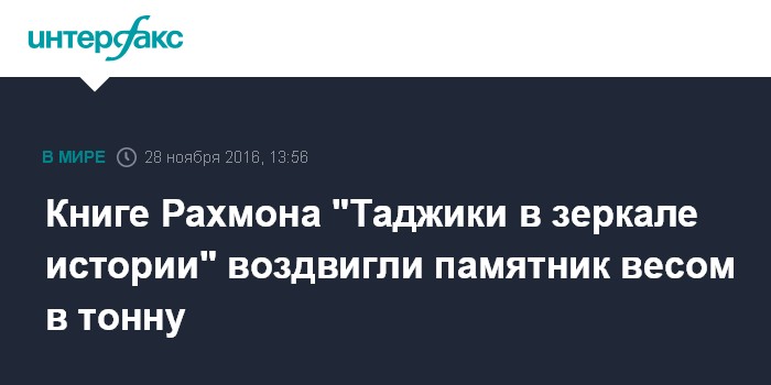 Москва. 28 ноября. INTERFAX.RU - Памятник книге президента Таджикистана Эмомали Рахмона "Таджики в зеркале истории" установили около Душанбе.