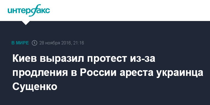 Москва. 28 ноября. INTERFAX.RU - Министерство иностранных дел Украины выражает решительный протест в связи с сегодняшним решением Лефортовский районного суда Москвы продлить на 2 месяца срок содержания под стражей украинскому журналисту Роману Сущенко.