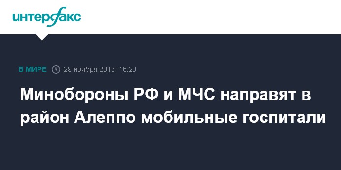 Минобороны РФ и МЧС направят в район Алеппо мобильные госпитали