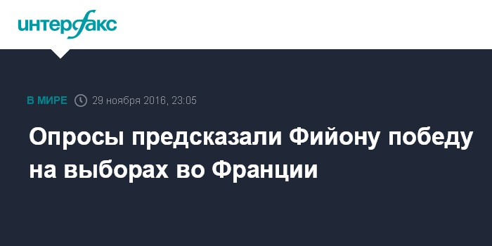 По данным опроса Kantar Sofres, если бы выборы прошли сейчас, в первом туре выборов Фийон получил бы от 28% до 31% голосов избирателей. Ле Пен, в свою очередь, получила бы от 23% до 25% голосов.